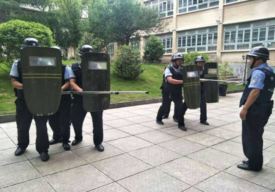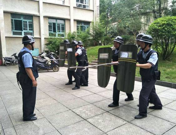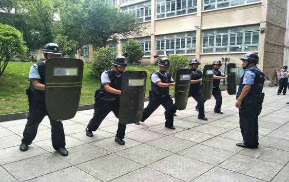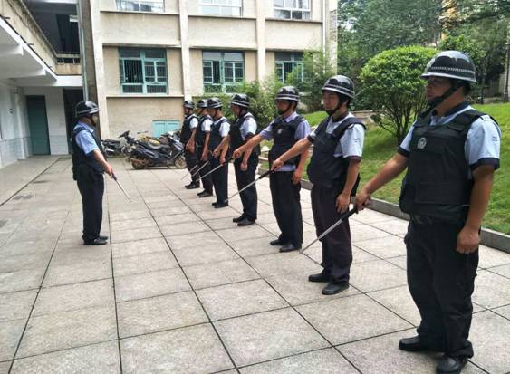 除此之外, 2017年8月1日至7日,学校按照《校园保安人员实训教程》,安排重庆大正物业管理公司开展以校园安保装备“八小件”实战使用为主要内容,为期一周的暑期校园保安人员专题培训,基本培训内容为一是队列训练。二是对保安员“防爆器材”的使用。三是应急演练强应变。并结合校园安保工作的实际需要,组织了学校突发事件应急演练培训和示范,增强校园专职保安突发事件应对和处置能力。
