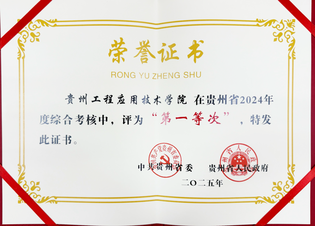 5月14日,全省2024年度综合考核总结大会在贵阳召开,会上通报了综合考核结果,并对获评“第一”等次和“争先进位”突出地区(单位)颁发了奖牌,我校荣获贵州省2024年度综合考核“第一等次”。
