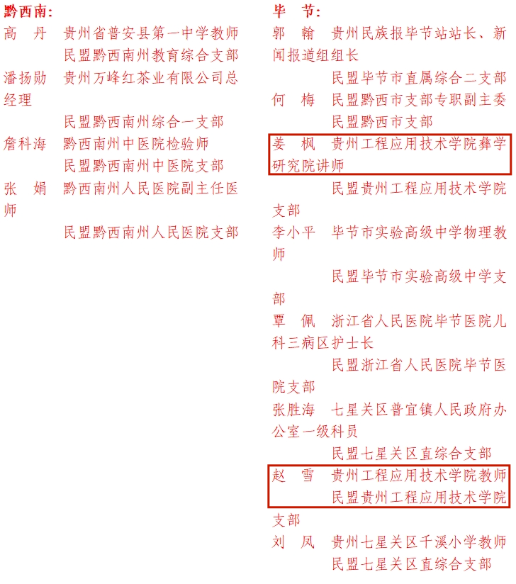 民盟聚焦关键目标。一方面统筹西南大学、广州大学等高校开展校校合作,为学科建设注入动力;另一方面推动民盟中央主席丁仲礼作出 “全力支持‘贵工程申硕工作’” 的批示,为学校突破硕士点建设注入关键动力。