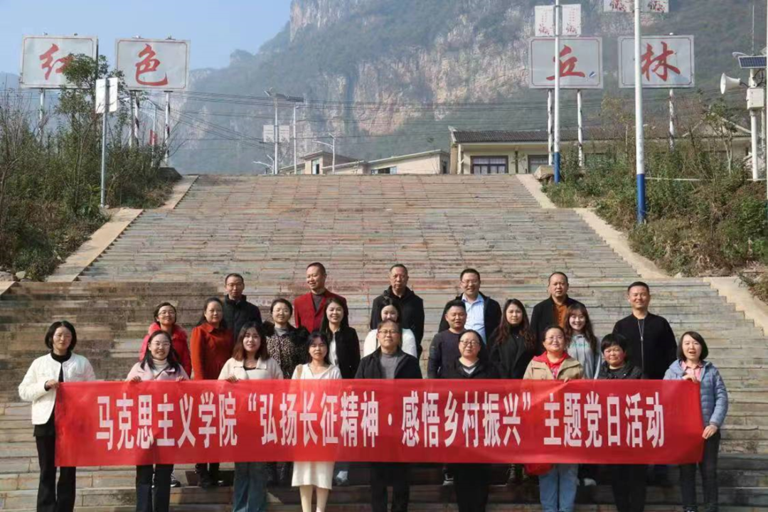 马克思主义学院坚持以党的建设推动学院“一心”“二行”“三品牌”工作,凝练党建品牌为“红色乌蒙”,教育引导师生发扬红色传统、传承红色基因,赓续共产党人精神血脉。树牢马克思主义学院红色底蕴,站稳学校红色文化高地;通过思政课堂,传承红色基因;开展红色乌蒙系列理论研究,把论文写在乌蒙大地上;加强校内外交流,彰显全国党史类课程联盟发起者优势。组织教职工赴黔西、大方、贵阳贵州长征数字科技艺术馆、七星关区生机镇等地开展主题党日活动,实地研学励初心,激发教职工立足岗位、提升责任感,增强党性修养,勇于担当作为。