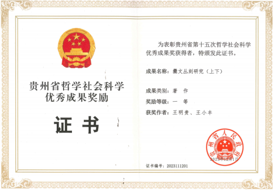 2023年获贵州省哲学社会科学成果奖