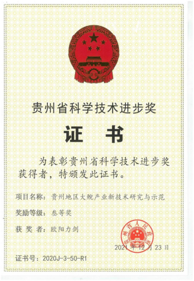 2021年获贵州省科学技术进步奖