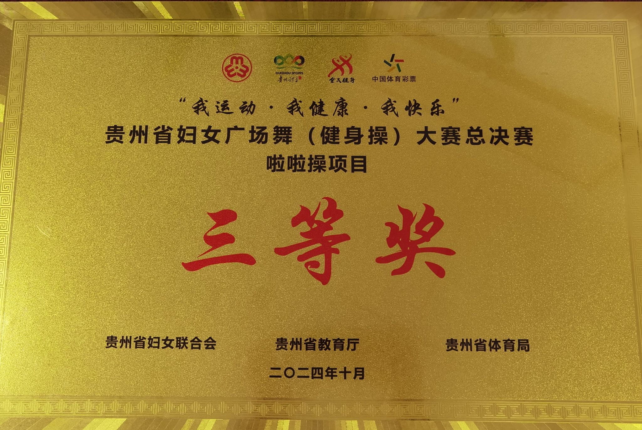 2024年10月18日,由贵州省妇女联合会、贵州省教育厅、贵州省体育局联合举办的“我运动、我健康、我快乐”贵州省妇女广场舞(健身操)大赛总决赛在贵州省遵义市圆满落幕,我校啦啦操团队在该项赛事中荣获三等奖。