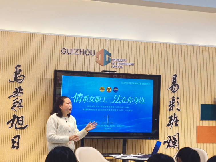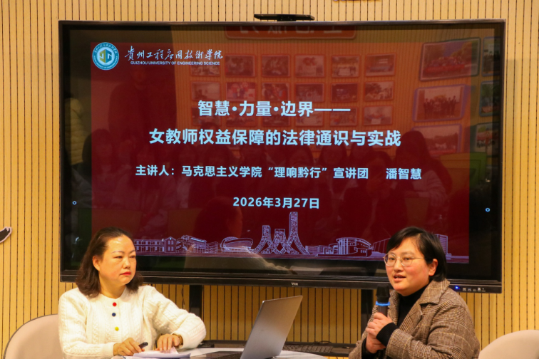为切实维护女职工合法权益、提升女教职工法治素养,3 月 27 日下午,我校工会在仲群楼 107 易班活动中心成功举办 “情系女职工,法在你身边” 普法宣传活动,本次活动由我校“理响黔行”宣讲团成员潘智慧担任主讲人。