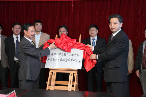 会上,陈永祥致欢迎词,李树刚、王祺先后作了讲话,李树刚、陈明刚为“西部矿井开采及灾害防治”省部共建教育部重点实验室毕节研究室揭牌,我校资源与安全工程学院、建筑工程学院负责人向客人介绍了工科建设情况,西安科技大学能源学院负责人介绍了“西部矿井开采及灾害防治”省部共建教育部重点实验室毕节研究室筹建情况。