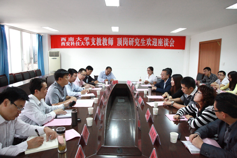 8月23日上午,2012年秋季学期西南大学、西安科技大学选派干部、教师、研究生来我校挂职、支教、顶岗实习欢迎座谈会在图书馆会议室举行。