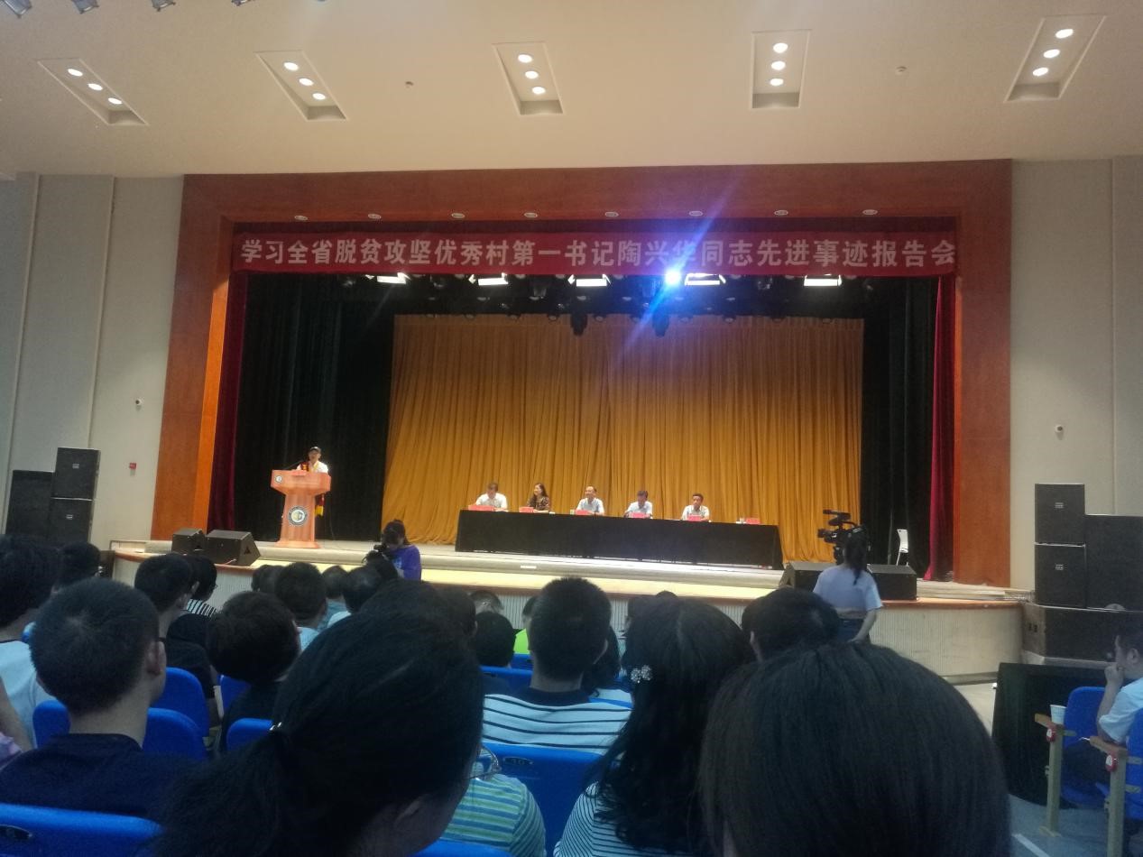 7月10下午,国际处党支部全体党员参加“全省脱贫攻坚优秀村第一书记陶兴华同志先进事迹报告会”。此次报告会是“学先进 赶先进 争做优秀党员”主题党日活动的重要内容。