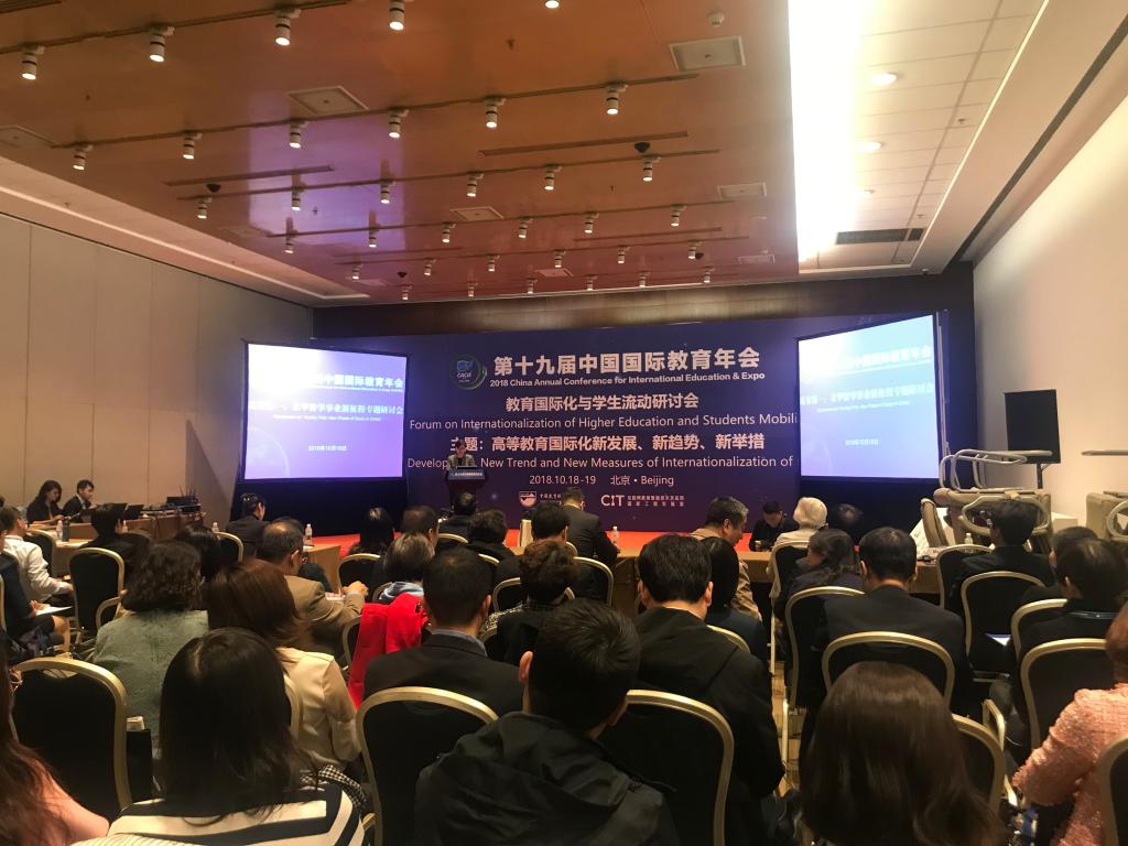 2018年10月18日至20日,第十九届中国国际教育年会在北京国家会议中心举行。按学校安排,夏蔚兰处长参加会议。