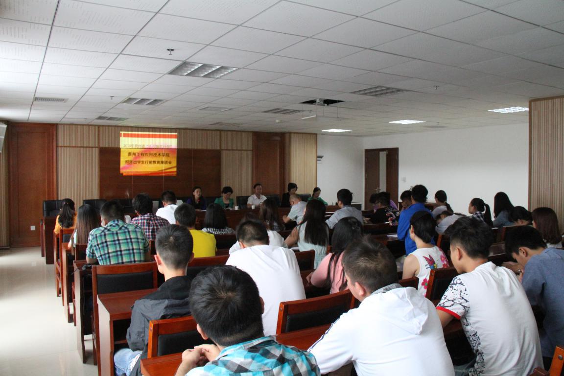 8月31日下午,我校在西区综合楼602会议召开了2015年贵州省“千人留学计划”拟派出学生行前教育座谈会。学校副校长池涌出席会议,学生工作处处长张秀兰、教务处副处长罗璇、计划财务处副处长涂红川、3名随队教师及38名拟派出学生参加会议。会议由国际合作交流处(对外合作交流处)处长夏蔚兰主持。