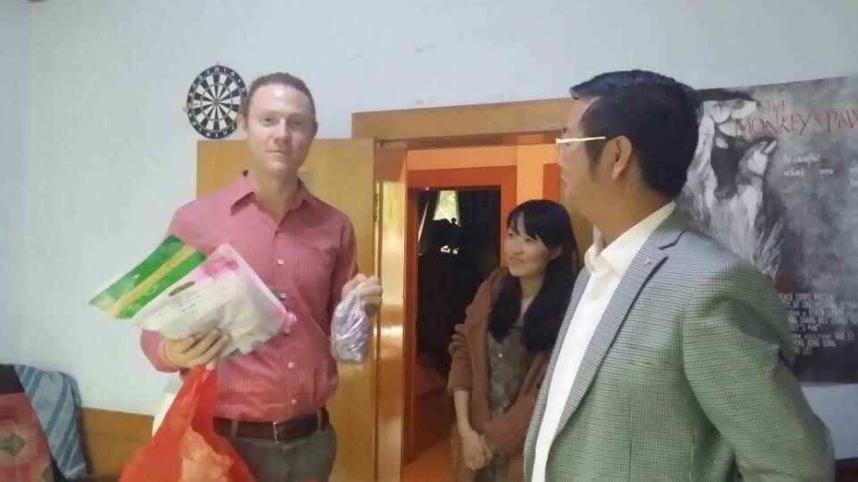9月18日下午,中秋节前夕,我校副院长池涌在国际合作交流处(对外合作交流处)负责人及相关工作人员的陪同下,前往学校教授楼看望慰问两名外籍教师Kevin和Chauncey。中秋将至,副校长池涌代表学校,向远道而来的外籍教师送上了节日的礼物和美好的祝福,让身在异乡的他们能够感受到浓浓的学校情和家乡情。
