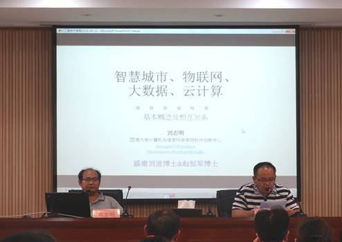 刘教授在讲座中给大家简明生动地介绍了智慧城市、物联网、大数据、云计算等一系列基本概念,并详细讲解了智慧城市建设中广泛运用的诸如信息通信技术(ICT)、普适计算、大数据、物联网(IoT)、面向服务的体系结构(SOA)、云计算和网络安全等关键技术,并形象地总结,在智慧城市的建设中,“设施和设备是支撑,软件是灵魂、数据是血液,政策和法规是保障”。