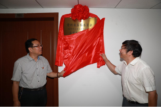 令狐荣锋与索绍新为“贵州省监察委员会驻贵州工程应用技术学院监察专员办公室”揭牌。
