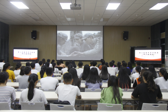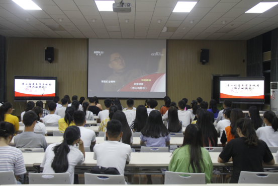 8月26日晚,贵州工程应用技术学院团委组织百余名学生于新时代讲习所观看大型长征史诗级电视剧《伟大的转折》首播。