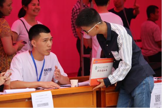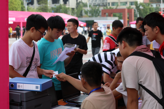 迎新现场,各二级学院、相关职能部门负责人和迎新工作人员无论烈日高照还是暴雨来袭,全程服务、热心周到。咨询接待、报到引导、绿色通道、费用缴纳、材料审核等服务工作有序进行。以老生组成的学生志愿者们热情引导,耐心为学生和家长提供校园路径、搬运行李、宿舍入住等服务工作。从客车站到学校,从学校大门到明德广场,从明德广场到服务大厅,从物品发放处到公寓宿舍楼,处处可见他们忙碌的身影。“奉献、友爱、互助、进步”是他们的服务精神,也是他们热爱贵工程的充分体现。工作人员以及志愿者们的热情服务,让新生及家长深深感受到了学校的温暖。