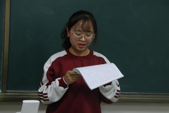 时光总是流逝得很快,转眼上半场活动便已结束,教室里伴着弹奏吉他的声音,响起了优美歌声,这是左代红给大家带来的吉他弹唱《太多》、《姬和不如》。两曲奏罢,下半场活动也正式开启。韦龙免同学通过细细品味劝诫同学们要多读书以求知、以明理。彭世江同学另辟蹊径,用创新的思维以自身实例谈起,告诉同学们联想记忆对读书效率的帮助。黄义同学通过分享把书读厚、读薄两种方法,希望同学门能通过有效阅读提升文化素养,树立正确世界观、人生观、价值观。