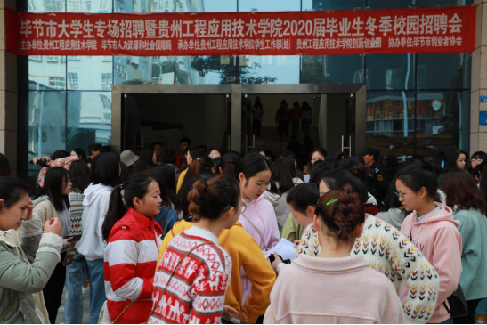 为着力拓宽就业渠道,搭建毕业生与用人单位的“双向选择”平台,助力毕节试验区脱贫攻坚、同步小康,推进就业脱贫工作,11月16日,毕节市人力资源和社会保障局和我校联合举办的“毕节市大学生专场招聘暨贵州工程应用技术学院2020届毕业生冬季校园招聘会”在创新创业园三楼举行。贵州工程应用技术学院党委副书记汤宇华,毕节市人力资源和社会保障局就业局局长周碧英出席,各职能部门负责人、教学院负责人参加招聘会。各学院学生科科长、辅导员、班主任到场组织毕业生有序进场应聘。