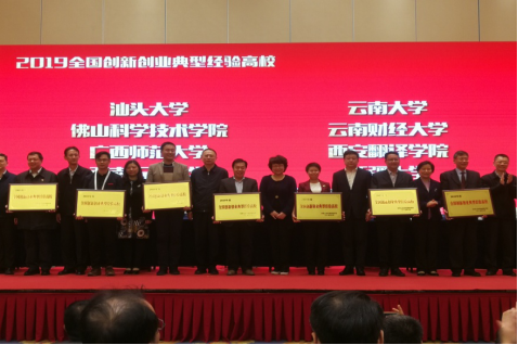 经过层层选拔,我校成功入选2019年度全国创新创业典型经验高校,成为我省获得此项殊荣的唯一本科院校。会上,翁铁慧副部长亲自为我校颁奖授牌,并对我校创新创业工作取得的成绩表示肯定。