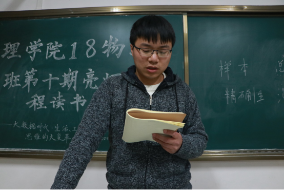 活动开始,由贵工程“员员港湾”辅导员工作室成员、18物理班班主任王洪标为本次读书会致辞。王老师对举行了10期读书会以后同学们的进步和表现给予充分的鼓励。他说,开展读书会的目的是锻炼同学们的语言表达能力、阅读能力;提升自主学习能力、深度思考的能力;锻炼沟通能力、组织能力,面对听众自主表达的自信力。他希望同学们珍惜韶华,不负青春,珍惜读书会这个平台,不断的提升自己各方面的能力,让自己的青春更加灿烂。