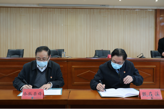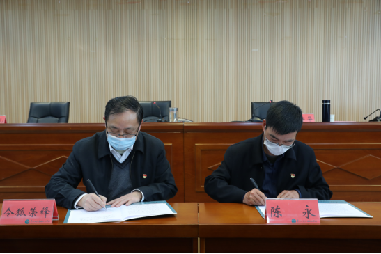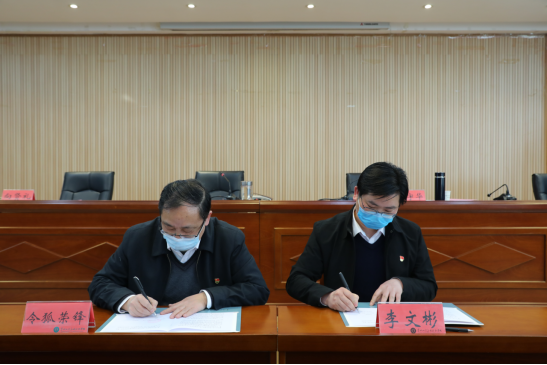 令狐荣锋与党委委员代表甄在溪签订了责任书