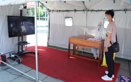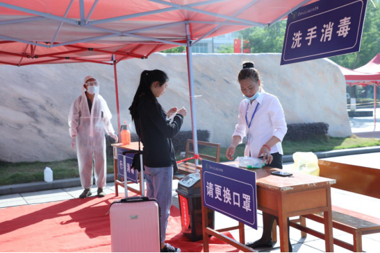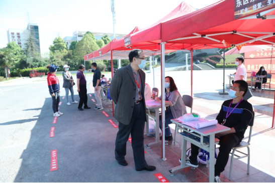 5月6日上午,学校东区和西区分别设了两个防控卡点,组建了六个工作组,按照演练程序逐一对返校毕业生进行严格检查,各学院(部门)工作人员各司其职,热情迎接同学们的回归,为学生提供全面周到的服务。返校复课的毕业年级学生经过扫码,消毒,验证,测体温,更换口罩等环节后,顺利来到阔别已久的校园,再次经过扫码,体温检测,登记,消毒等环节后入住宿舍,同学们的到来使贵工程又恢复了往日生机。