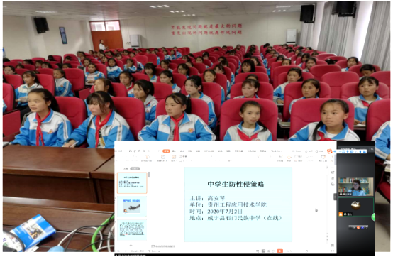 7月2日,贵州工程应用学院师范学院高安琴老师通过腾讯会议视频为威宁县石门民族中学(以下简称石门中学)女性学生做“中学生防性侵策略”培训会。培训会由吴雪瑞(领办石门中学挂职副校长)主持,工会主席王菲、思政主任陈超、留守儿童工作负责人所慈威等老师及女性学生参与。