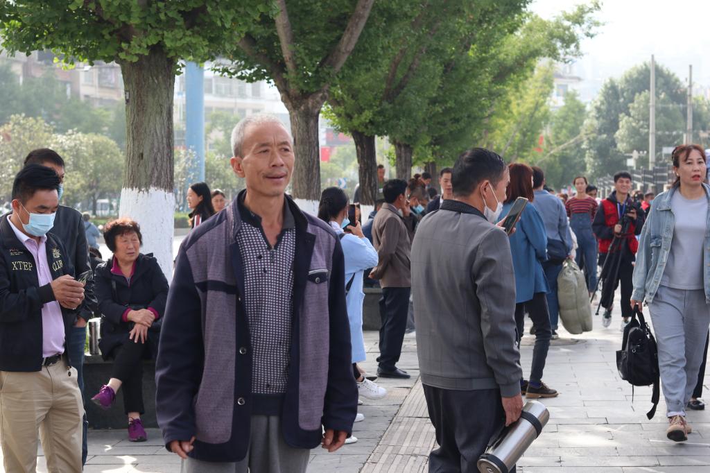 随后我的目光被一名知性的妈妈吸引,她看起来很年轻,戴着眼镜,身边站着的男生已经比她要高出一些来。这是一对来自甘肃的母子,接受采访时年轻的母亲总是爽朗地笑着,给我分享了沿途黄果树、西江苗寨等美景。她说,这一路的旅程成了她和儿子的美好时光。关于对儿子的期望,她说到,“我儿子是计算机专业的,我希望他可以读研,多读书总是没有坏处的,在大学里我相信他自己也会努力,带着属于他的那份运气,成为自己想成为的模样。”