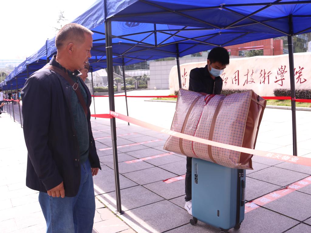 原本一直阴雨绵绵的毕节终于在新生报到的第一天突然转晴,连续两天艳阳高照,伴着秋味和桂香,似乎一切都在呼应着2020级新生踏入贵工程大门时兴奋又激动的心情。9月20日下午,带上纸笔和满怀喜悦的心情来到了校园外围。接送新生的班车一波波到达,在家人、朋友的陪同下,来到贵州工程应用技术学院。