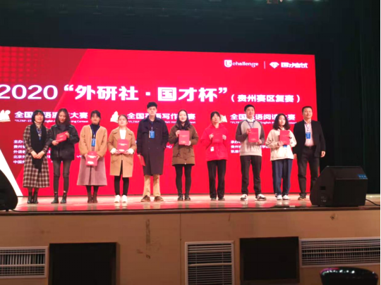 11月7日,“2020年外研社•国才杯全国英语演讲、写作、阅读大赛”贵州省复赛在凯里学院举行。我校外国语学院参赛代表队分别获得一等奖一项、二等奖两项、三等奖两项的优异成绩。