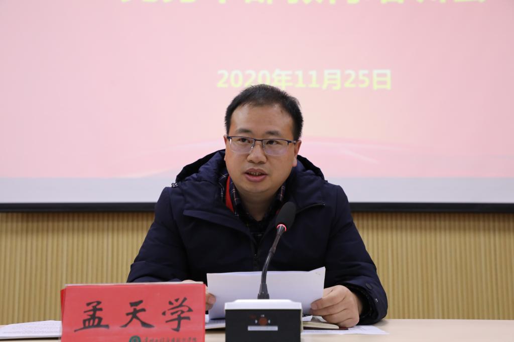 会上,孟天学通报2020年度党支部标准化规范化建设验收情况及就学校新一届党委委员、纪委委员候选人预备人选有关情况作说明。