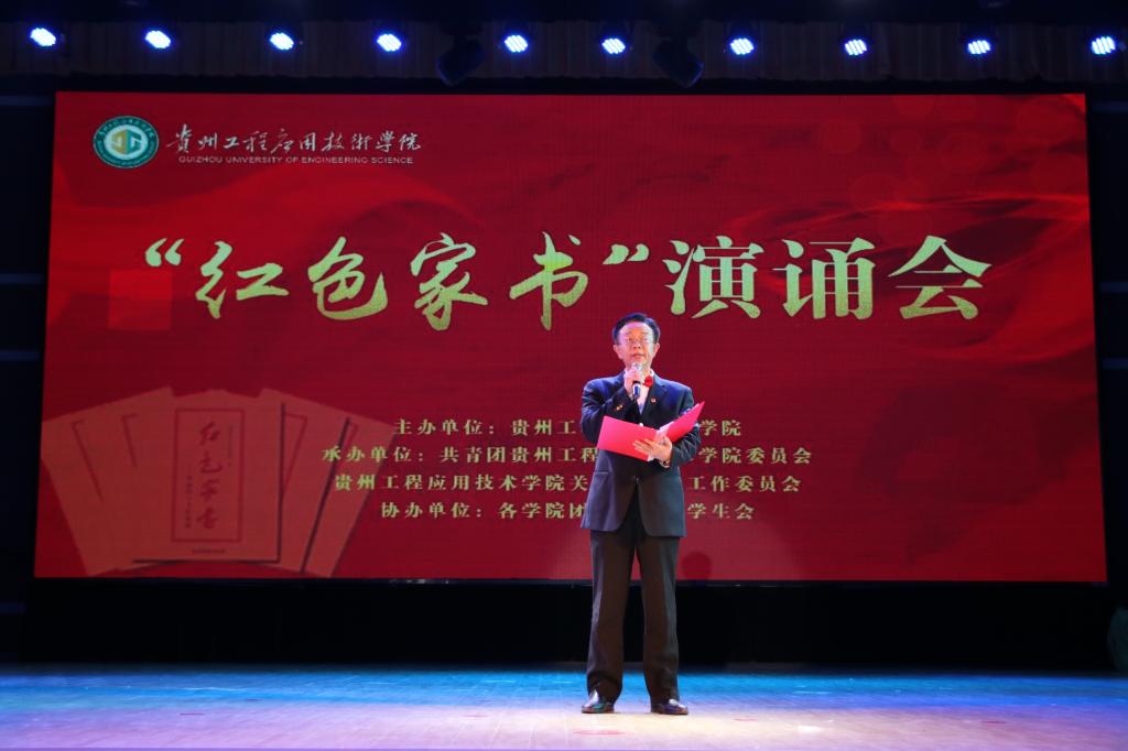 12月7日晚,贵州工程应用技术学院正心礼堂座无虚席、掌声阵阵、激情涌动,“铭记历史·缅怀先烈”红色家书演诵会在这里举行。党委副书记、校长王建平出席;学校全体团干、特邀嘉宾冯玉珍、贾晋渝、赵琨以及师生代表700余人一起感悟先烈初心、传承家国情怀、厚植红色基因、汲取信仰力量、牢记初心使命。
