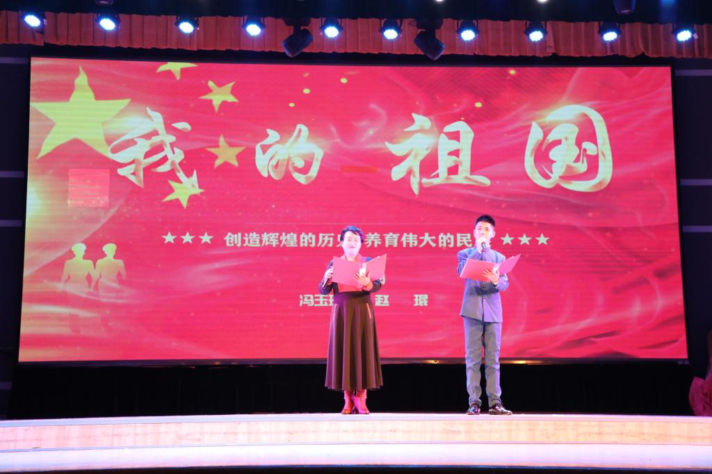 “别了,我最亲爱的哥哥,你的来函促成了我的决心,恨的是不能握一握最后的手,再独立的向前途踏进”,演诵会在学校全体团干老师朗诵的《别了,哥哥》朗诵声中拉开序幕,他们字字铿锵、声情饱满的朗诵瞬间点燃观众的热情,赢得掌声阵阵。在学校关工委贾晋渝老师朗诵的《有一首歌》中,观众似乎看到了南湖上的那一艘红船,看到了中国革命绽放出的第一缕曙光。学校关工委冯玉珍老师、赵琨老师深情地合诵了《我的祖国》,表达了亿万中华儿女对祖国深深的爱恋和祝福。