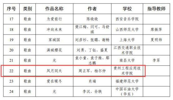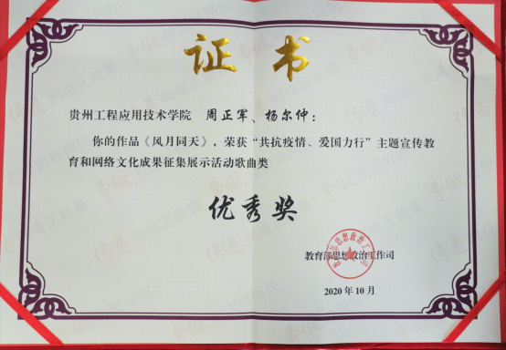 10月15日,教育部思想政治工作司、中央网信办网络社会工作局正式公布第四届全国大学生网络文化节和全国高校网络教育优秀作品推选展示活动入选名单,我校教师作品《风月同天》在“共抗疫情、爱国力行”主题宣传教育和网络文化成果征集展示活动中获音频类作品优秀奖。