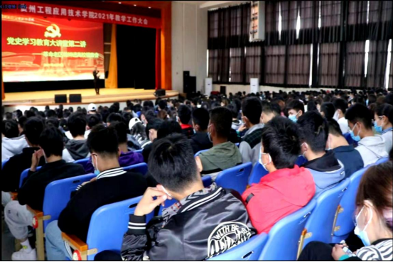 宣传部负责同志在主持中向大家介绍了学校2019年召开“第十一届全国革命老区高校联席会”的意义和成效,同时为大家推荐了《古田小红军》、《红色贵州》、《古田军号》、《红军山上杜鹃红》、《沂蒙》等红色著作及影视作品;他在总结中要求同学们深入学习党史、新中国史、改革开放史、社会主义发展史,正确认知中国共产党的发展历史和伟大成就,学好本领、报效祖国,用一生来践行感党恩、听党话、跟党走。