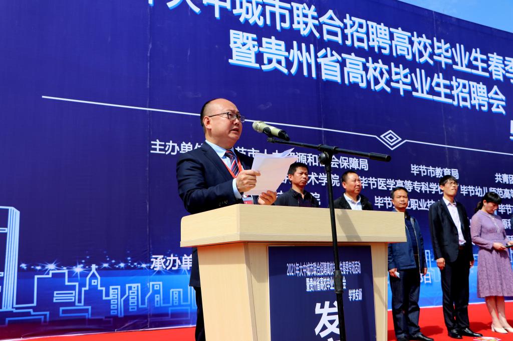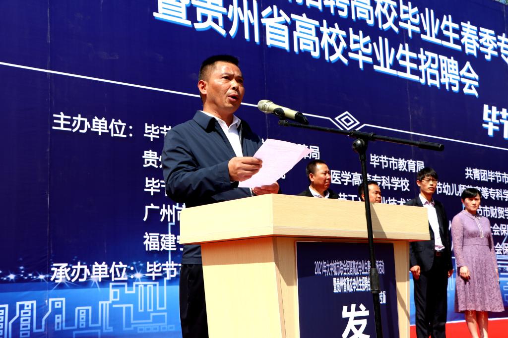 启动仪式上,由毕节市人力资源和社会保障局三级调研员、市就业局局长陈环主持,贵州工程应用技术学院党委委员、副校长李琳致辞,毕节市人力资源和社会保障局党组成员、副局长王孕秋讲话并宣布招聘活动正式启动。
