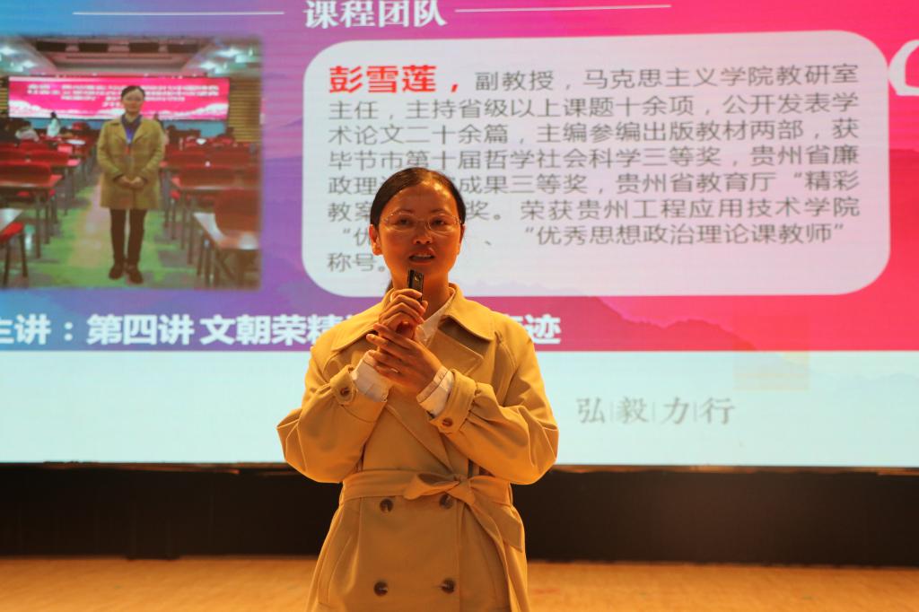 据悉,本课程是贵州工程应用技术学院2021年开始打造的面向全体在校生开设的“四史”大型公选课之一。整个课程由导论、深入学习贯彻新发展理念、一份清样与毕节试验区的建立、试验区建设及成就、文朝荣精神及毕节战贫、同心共筑毕节梦、青年红色筑梦之旅实践活动七个部分组成。