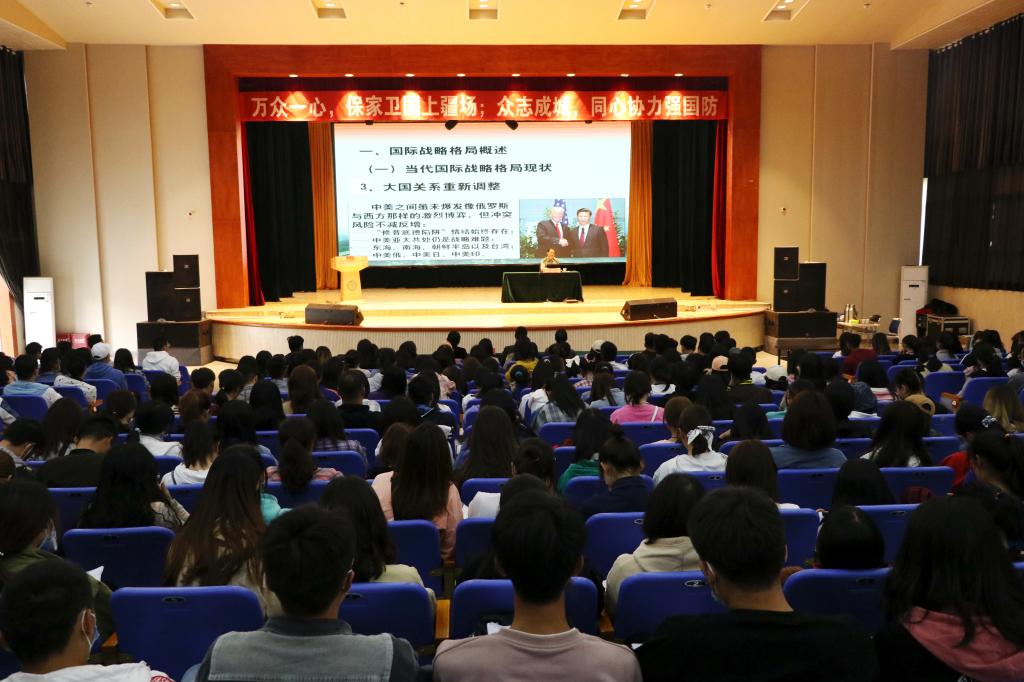 董晓军结合史实与时事,从国际战略格局现状、中国周边环境特点、中国面临的主要威胁及相应的应对措施四个方面为同学们开展了一堂精彩生动的国防教育课。他深入剖析当前国际、国内形势,详细阐释了国际战略力量的相对均衡性、复杂性等问题。他希望同学们增强国防意识,居安思危、认真学习、努力成才,为国防安全贡献自己的力量。