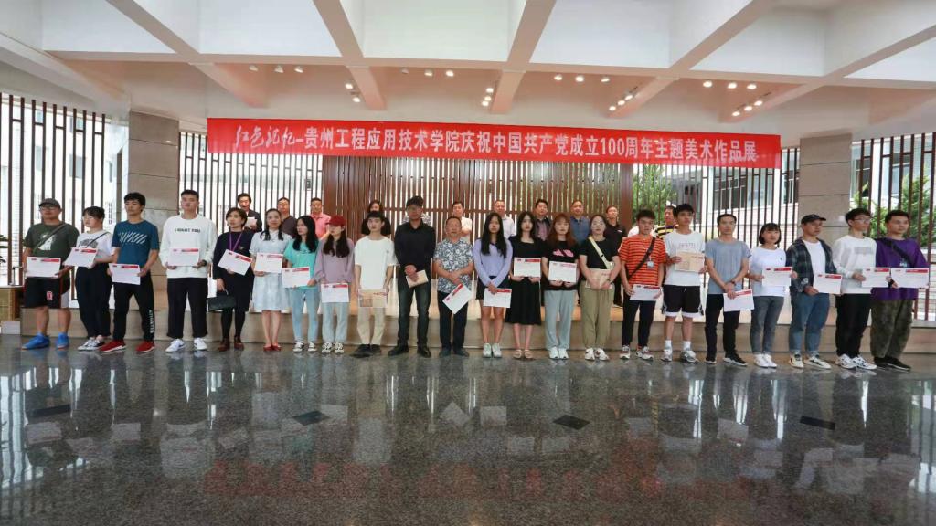 为给中国共产党百年华诞献礼,共同赞颂我们伟大的党,伟大的祖国。6月20日下午,我校在艺术楼大厅举行“红色记忆—庆祝中国共产党成立100周年”美术作品展开幕式。省委党史学习教育第二十一巡回指导组副组长蒋承云,组员谢帝奎,中国美术家协会会员、国家一级美术师、贵阳美术馆馆长冉茂列,毕节市文学艺术届联合会副主席杨春明,毕节市美术家协会主席徐峰,我校党委副书记汤宇华,党委委员、宣传部(统战部)部长夏鲲出席,艺术学院师生代表150余人参加开幕式。开幕式由艺术学院院长周正军主持。