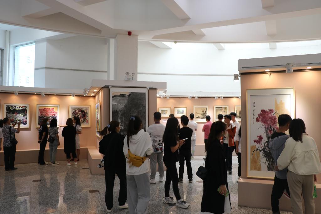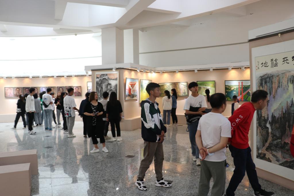 在开幕式上,参加开幕式领导还为获奖作品作者代表颁奖,开幕式结束后,参加开幕式的领导和师生一起移步展厅参观了美术作品展。