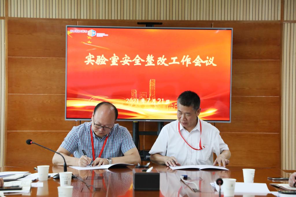 李琳与各学院行政主要负责人签订安全责任书,并就实验室安全工作整改工作提出要求。李琳指出,实验室安全责任体系的建立和落实是做好实验室安全工作的关键,要牢固树立安全红线意识,完善制度,强化落实,居安思危,警钟长鸣。他要求,各部门、各学院党政负责人要规范制度、流程建设,对照检查项目表做好自查和整改工作,切实保障实验室安全专项经费的投入,加大安全宣传教育与安全检查力度;要整改落实到位,做好检查工作,排查隐患,及时反馈整改;要认真谋划好建设,加强培训,提高认识,高度重视,形成自觉,切实增强责任感和紧迫感;要明确整改责任人,督促相关责任人照单履责、照单整改。他强调,要通过全校上下共同努力,切实解决实验室安全薄弱环节和突出矛盾,为确保全校师生员工生命安全和实现高质量发展创造良好的环境。