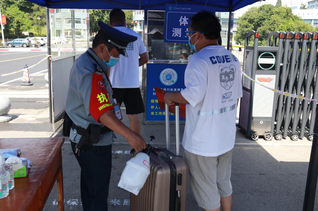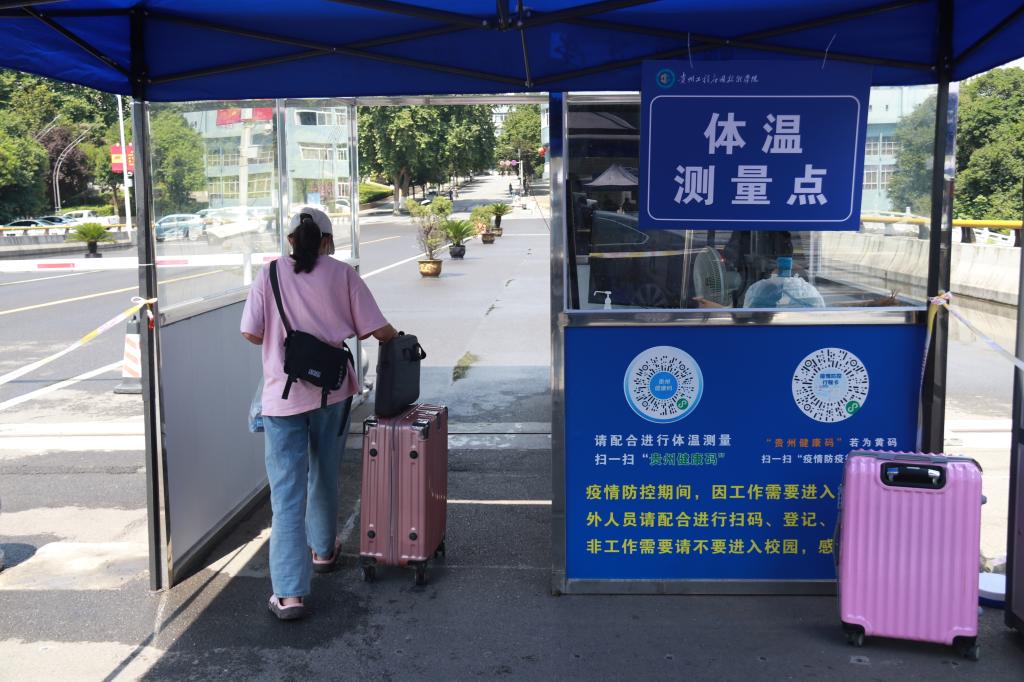 8月21日上午,工作人员提前到岗,准备充分,同学们陆续来到东、西区大门口报道点,经过扫描贵州健康码及行程卡、行李消杀、身份核验、人体测温之后有序进校,校园内外又是一派生机勃勃景象。