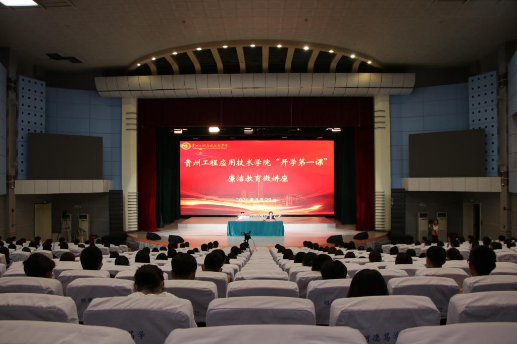 为积极营造崇廉尚洁的教育氛围,让廉洁成为贵工程全体师生的内在追求,按照毕节市纪委的安排,我校抓好开学这一重要时间节点,于8月29日晚开展了主题为“知廉倡廉守廉,助推青春远航”为主题的开学第一课。校党委书记令狐荣锋,党委副书记、校长王建平,党委副书记汤宇华,纪委书记郭永红,党委委员、宣传部(统战部)部长夏鲲出席活动,活动在秋逸音乐厅举行,学校部分师生代表现场参加。学校在新时代讲习所、正心礼堂安排了集中直播观看点,各学院在相关教室安排了网络直播观看点,全校师生通过线上线下方式参加本次活动。校领导郭永红主持活动。