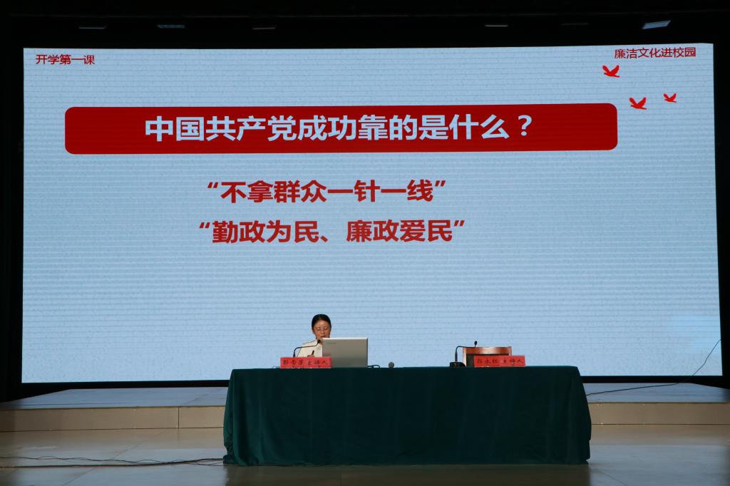 在活动中,郭永红首先介绍了此次活动的目的和意义。她指出,新时代中国青年要以实现中华民族伟大复兴为己任,增强做中国人的志气、底气和骨气,不负韶华,不负党和人民的殷切希望,中国青年只有提高自身思想,明大德,成大才,才能担大任,才能自豪喊出“请党放心,强国有我”。她强调,在中国青年立德成才过程中,社会、学校、家庭责无旁贷,我校以一贯之立德树人工作要求,把大学生思想政治教育作为工作的重中之重,积极响应毕节市市纪委,市监委的倡导,以开学第一课的形式开展以廉洁为主题的微讲座,以期在青年学子中传承红色基因,弘扬廉洁文化,营造知廉、倡廉、守廉的浓厚氛围,帮助全校青年学子树立正确的世界观、人生观、价值观,扣好人生第一粒扣子。