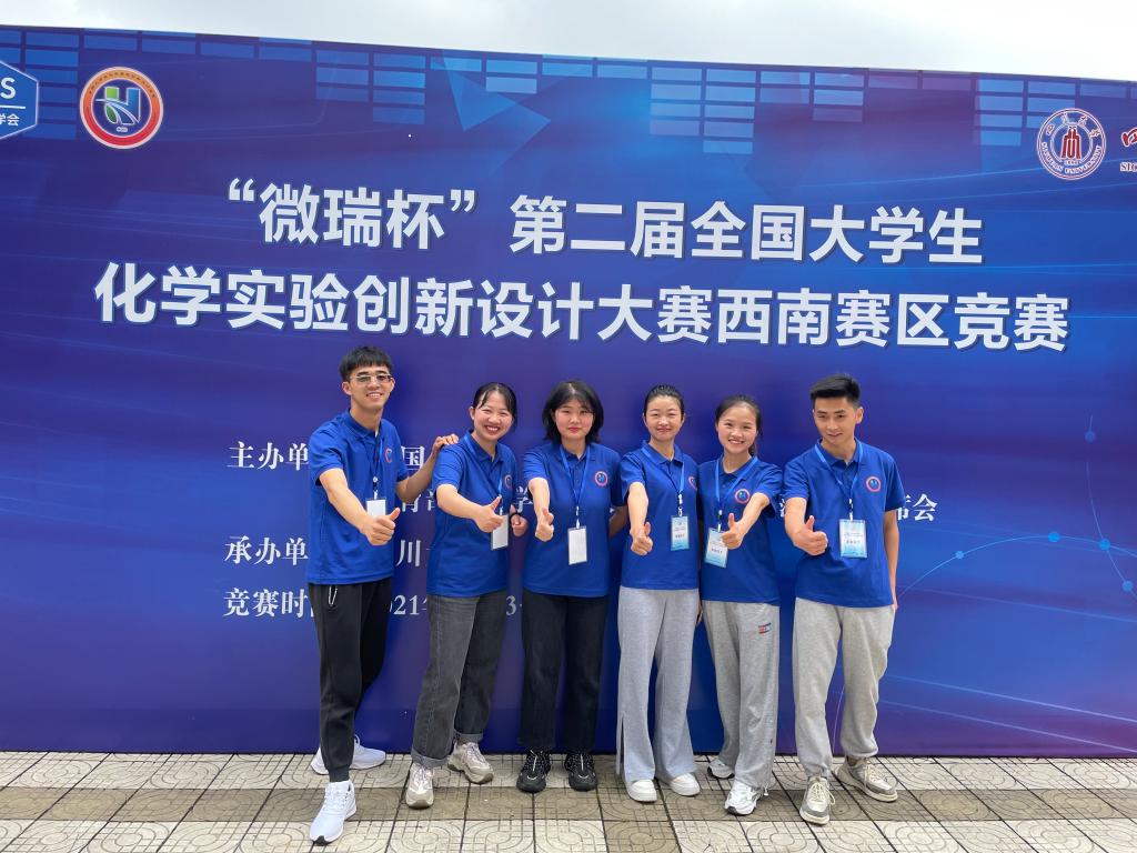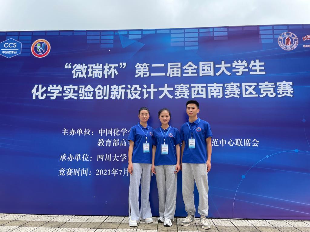 近日,由中国化学会、教育部高等学校国家级实验教学示范中心联席会主办,青岛科技大学承办的2021“微瑞杯”第二届全国大学生化学实验创新设计大赛全国总决赛”在青岛科技大学举行。来自全国西南、西北、华北、华东、华中、东北、华南七个赛区300余所高校的800多只参赛队伍通过各赛区选拔,最终90所高校的代表队进入全国总决赛。我校化学工程学院赵高禹、刘高赋老师指导的“聚苯乙炔铜的一步法合成”以西南赛区一等奖进入全国总决赛,并荣获全国总决赛二等奖的优异成绩(贵工程1队:2019级刘寒、2019级涂杰、2019级赵莲英);由罗树常老师指导的“环己醇制备环己烯的改进和教学创新设计”荣获西南赛区三等奖的优异成绩(贵工程2队:2018级林雅慧、2018级黄睿洁、2018级曾新峰)。