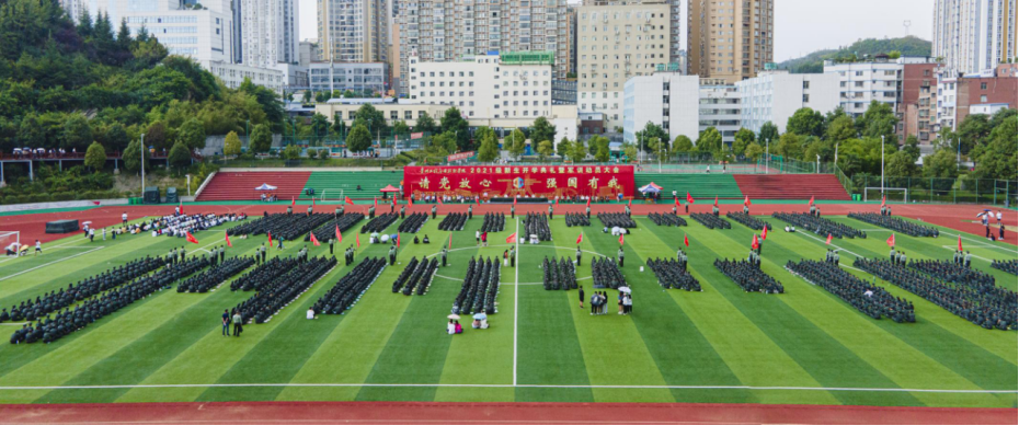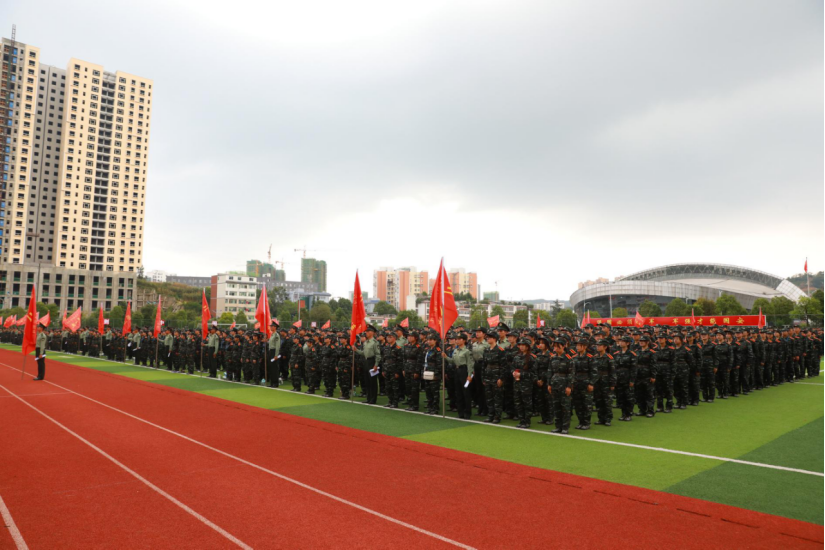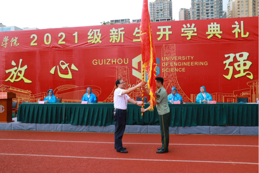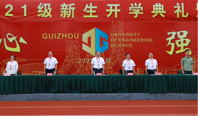 秋高气爽,金桂飘香,2021级新生的到来为奋进的贵工程校园注入了新鲜的活力。9月10日下午,我校2021级新生开学典礼暨军训动员大会在田径运动场隆重举行。校党委书记令狐荣锋,党委副书记汤宇华、向贤礼,副校长李琳,纪委书记郭永红,毕节市武警支队警勤中队副中队长李奡中尉、农光斌上士、黄运作上士出席,各部门主要负责人,各学院党政主要负责人、学生科负责人、辅导员、新生班班主任,学校军训教官团全体成员、2021级全体新生参加典礼。大会由汤宇华主持。