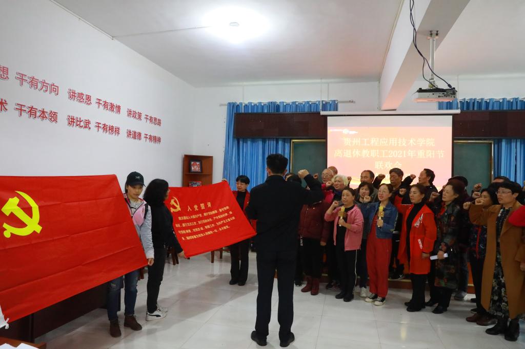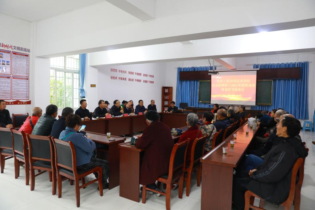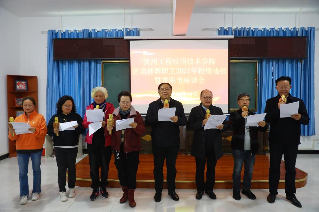 岁岁重阳,今又重阳。10月14日,我校2021年离退休教职工校情通报暨重阳节座谈会在黔西市化屋村村公所会议室召开。校党委书记令狐荣锋,党委委员、副校长李琳,党委委员、组织部部长陈兴才,离退休教师代表、党委办公室、党委组织部相关人员参加座谈会。会议由陈兴才主持。