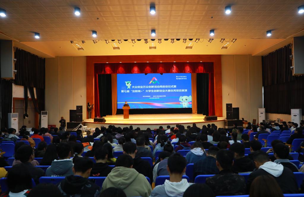 为深入推进我校创新创业教育工作,营造良好的创新创业文化氛围。10月19日下午,我校“大众创业万众创新”活动周启动仪式暨第七届“互联网+”大学生创新创业大赛优秀项目展演活动在学校正心礼堂举行。校党委副书记汤宇华出席,教务处、学生处、团委、创新创业学院负责人、各学院分管双创工作相关负责人、创新创业指导教师及学生代表600余人参加仪式。仪式由教务处负责人主持。