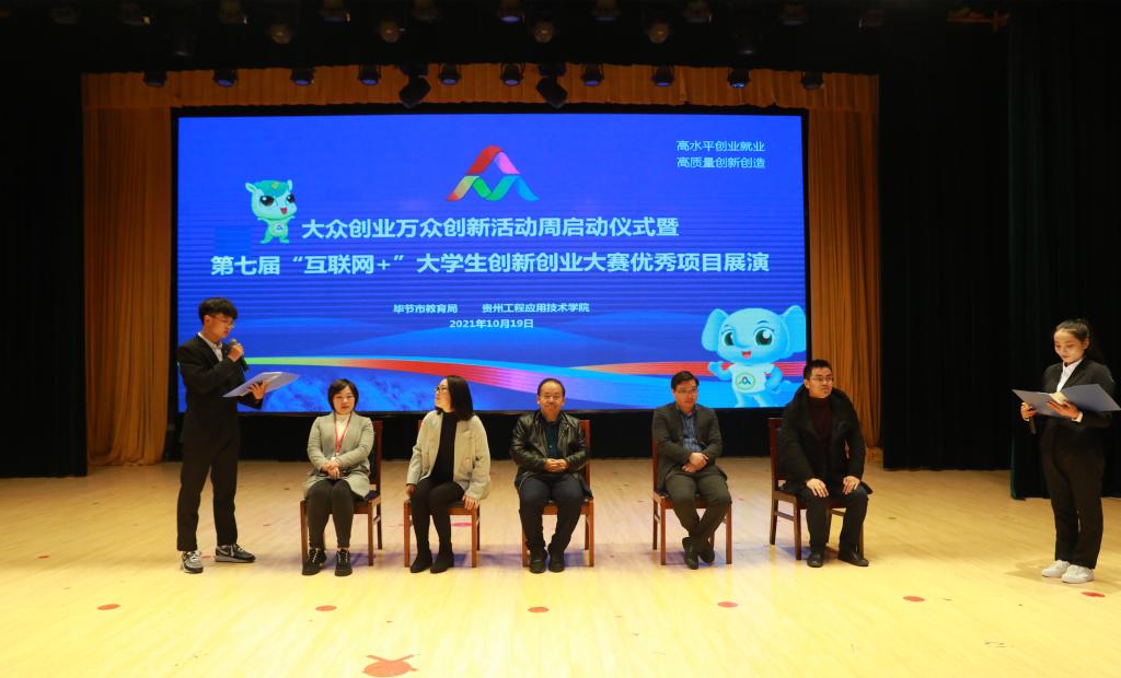 在优秀项目展演阶段,第七届中国国际“互联网+”大学生创新创业大赛中获得省级奖的8个项目进行汇报展演。8个获奖项目主要聚焦毕节乡村振兴、社会服务需求,体现我校大学生的责任担当。这场充满激情的汇报展演彰显了贵工程学子积极奋进、关心社会、敢闯敢拼、团结合作的精神风貌。