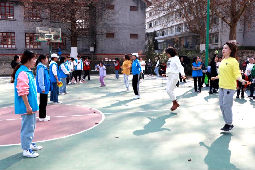 中心球场上,跳绳、蒙眼击鼓、抢凳子、逃离危险岛、三人四足、心有灵犀、乒乓球迎面接力……系列趣味活动精彩纷呈,大家在团体协作中各显身手、奋勇争先,每个人都乐在其中,体验着活动带来的快乐与激情。本次活动充满了浓郁的节日气氛,营造了全校上下“幸福工作 快乐学习”的良好氛围,大家在欢声笑语和奋力拼博中度过了一个充实愉快、富有意义的节日。