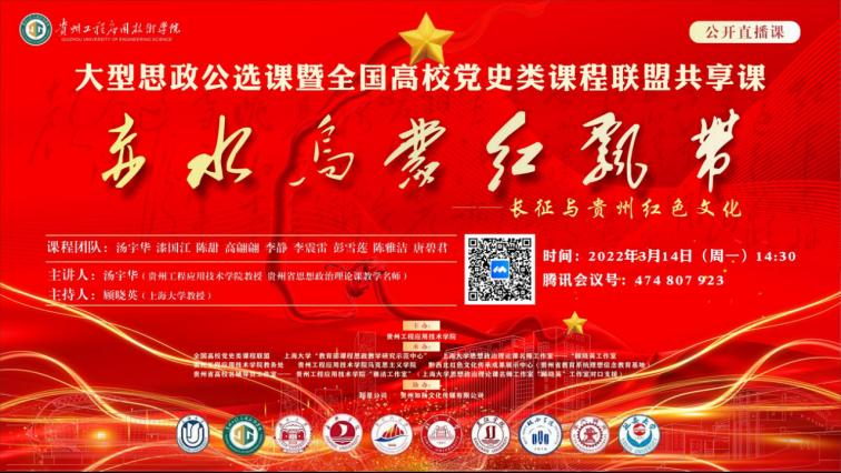 3月14日下午,我校大型思政公选课暨全国高校党史类课程联盟共享课——《赤水乌蒙红飘带——长征与贵州红色文化》通过腾讯会议公开直播。