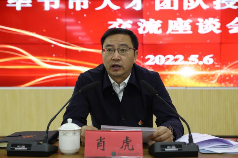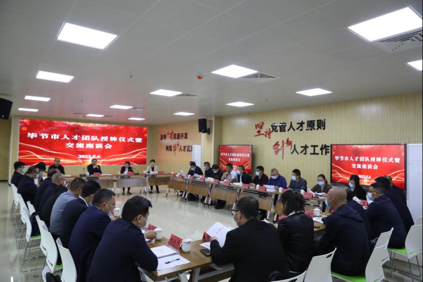 为推动人才工作提质增效,加快打造选贤任能聚才高地,持续推进人才强市。5月6日上午,毕节市人才团队授牌仪式暨交流座谈会在我校创新创业孵化园举行。市委常委、组织部部长、市委人才工作领导小组副组长肖虎,市委组织部副部长、市人力资源社会保障局党组书记、局长郑荣,我校党委书记令狐荣锋,党委副书记、校长张嗣杰,党委副书记汤宇华出席会议,市委组织部、市人力资源和社会保障局、市教育局、市科技局、市工信局、市农业农村局、市文化广电旅游局等市直部门有关负责同志及省级人才基地和第五批补充申报并获授牌的人才团队负责人参加会议。会议由市人民政府党组成员、副市长、市委人才工作领导小组副组长万艳主持。